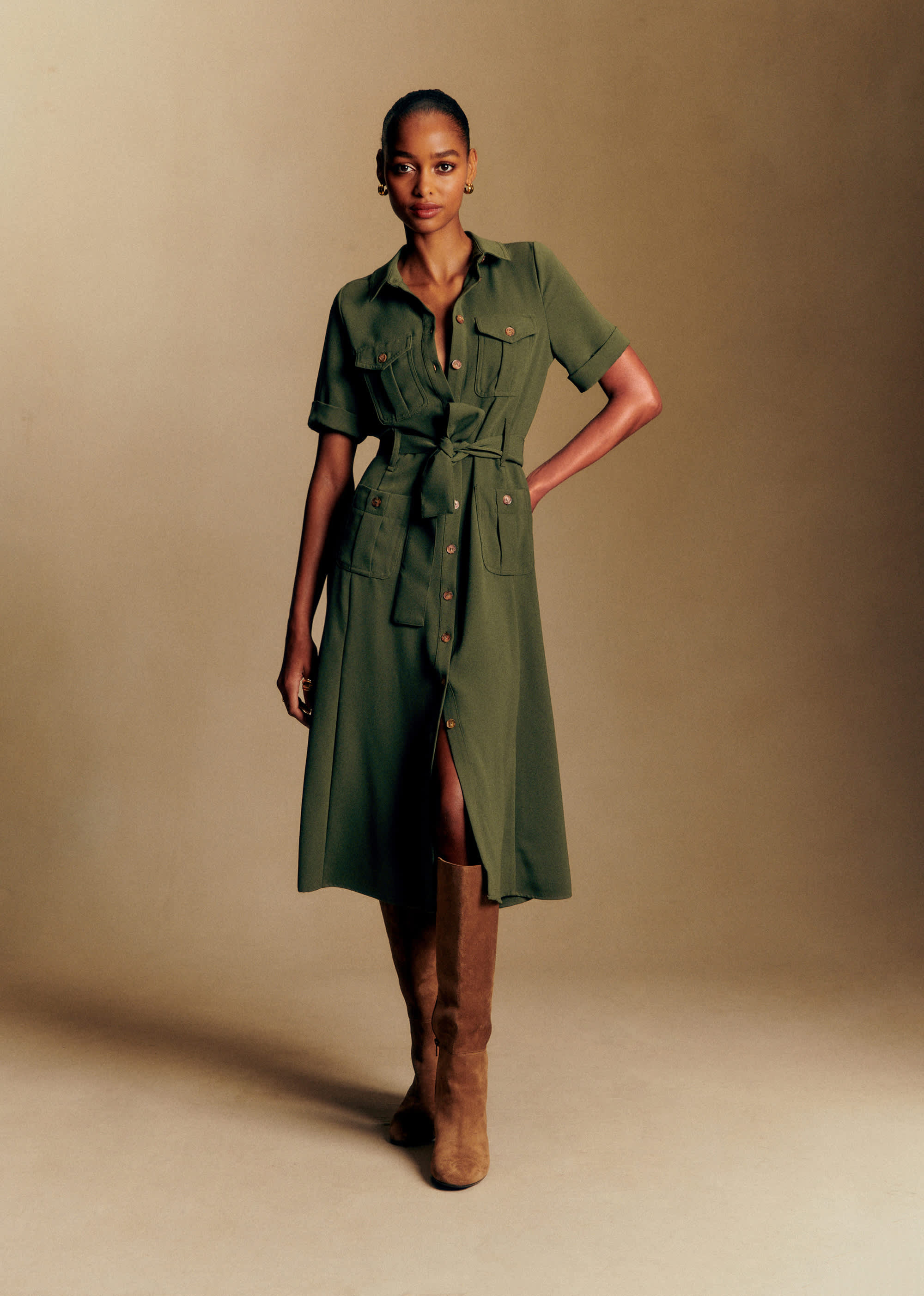 - Robe midi à manches courtes