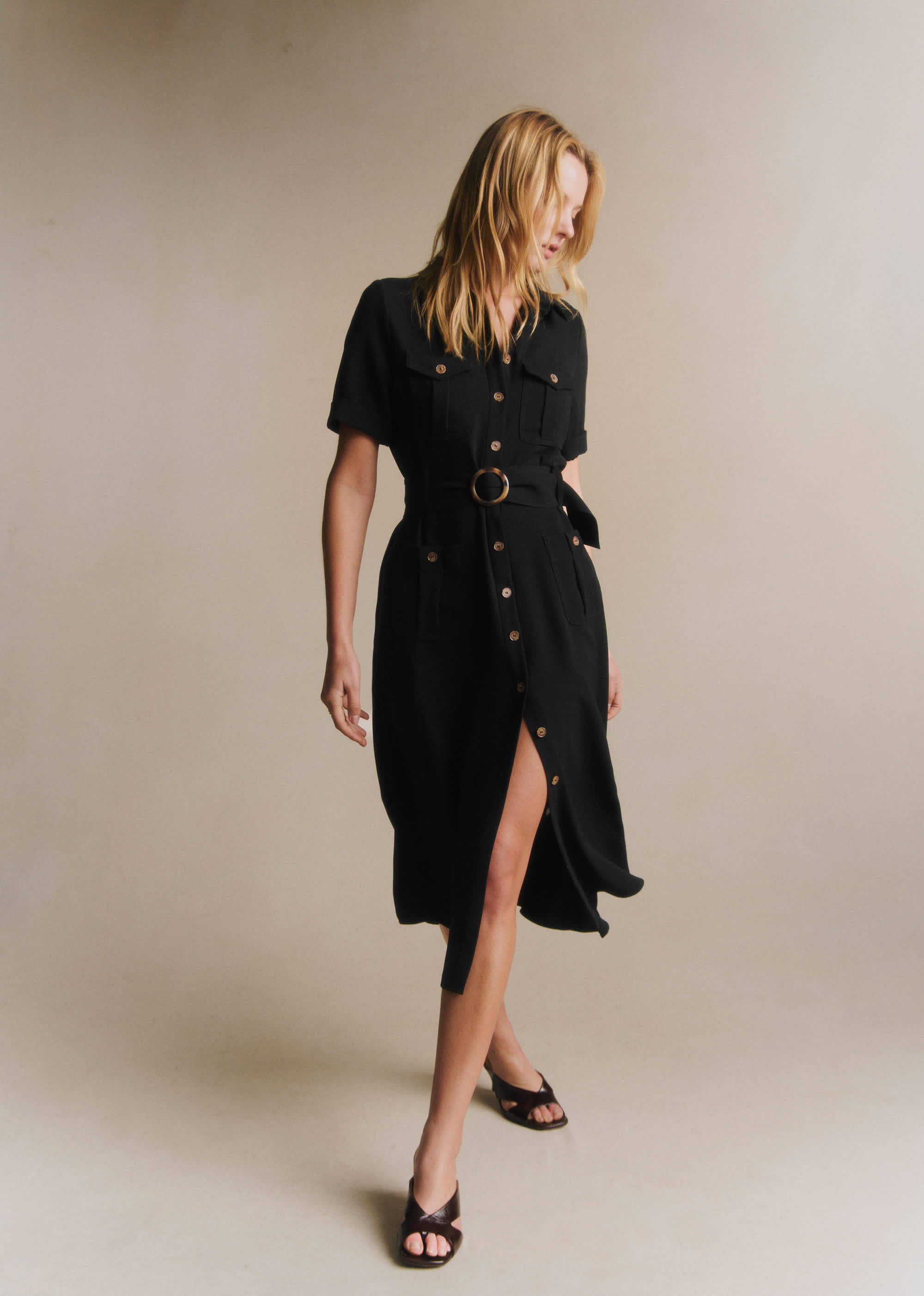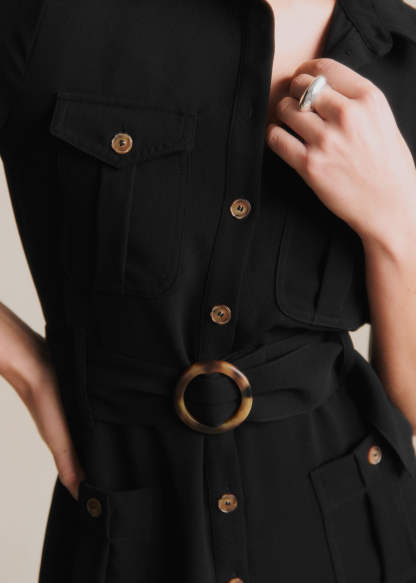 - Patte de boutonnage le long de la robe